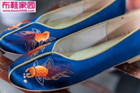 金赤鱼背和杏色鱼腹被密密匝匝地绣在鞋尖,优美的尾鳍被各色丝线虚虚勾勒漫延向鞋帮,小巧的淡色鱼泡略略点缀,一尾灵动的红虎头龙睛就在湖蓝色真丝缎面鞋上游曳开去。这样一双明艳又清雅的金鱼绣花鞋,就陈列在祖母绣堂的鞋架上。 祖母绣堂,是北京一个手工绣花鞋的原...